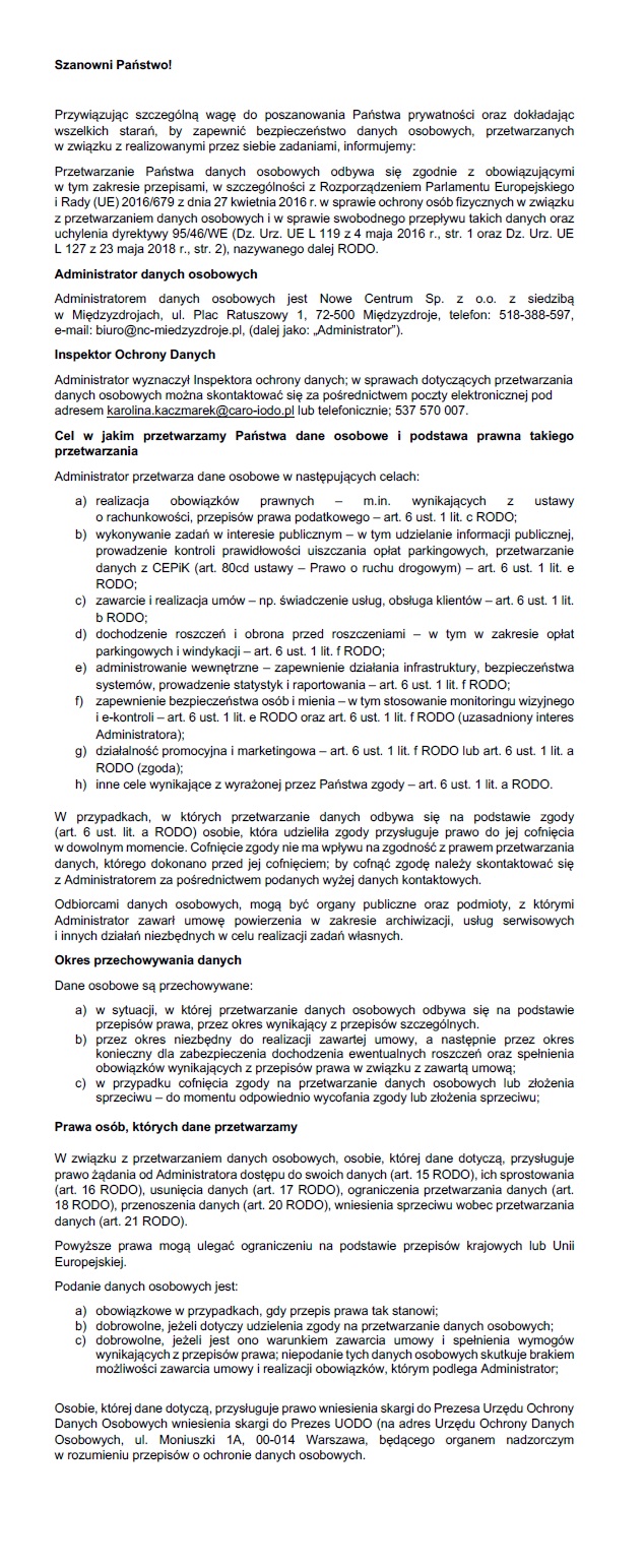 Nowe Centrum sp. z o.o. Plac Ratuszowy 1 72-500 Międzyzdroje tel. 518 388 597 e-mail: biuro@nc-miedzyzdroje.pl